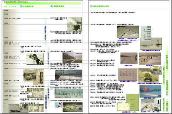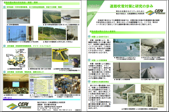 ▼「道路吹雪対策と研究の歩み」パンフレット裏面 (クリックすると画像が大きくなります)