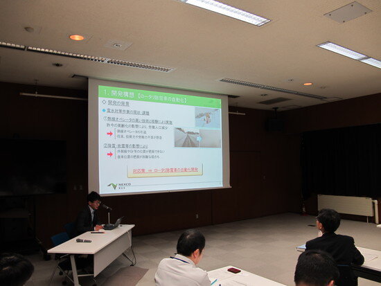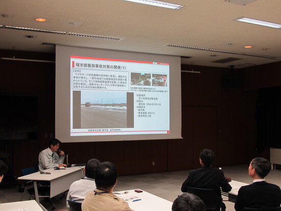 情報交換会では、NEXCO東日本からロータリ除雪車の自動化に向けた取組みなど4件、寒地土研からワイヤロープ式防護柵の開発など7件の発表があり、活発な質疑応答が交されました。