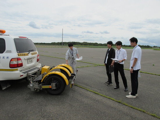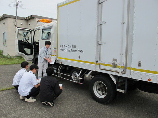 ▲連続路面すべり抵抗値測定装置(RT3)の説明状況
