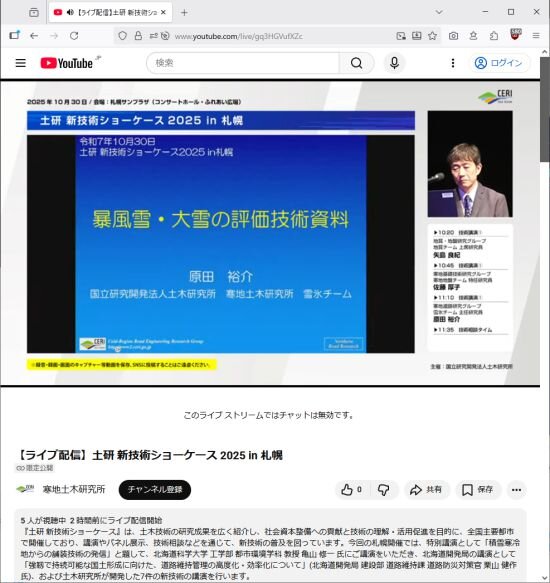 令和7年10月30日(木)に、札幌サンプラザで開催された「土研 新技術ショーケース 2025 in 札幌」において、原田主任研究員が「暴風雪・大雪の評価技術資料」と題した技術講演を行いました。