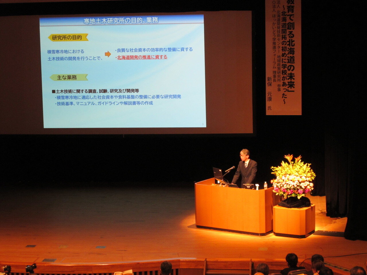 寒地土木研究所講演会は、積雪寒冷地における土木技術の研究開発及び成果等についてより多くの方々にご紹介する事を目的に毎年開催しています。