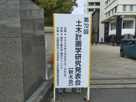 令和7年11月22日(土)から24日(月)まで、福井工業大学 福井キャンパス、および福井フェニックス・プラザで開催された「第72回土木計画学研究発表会・秋大会」に参加し、寒地交通チームから1件の発表を行いました。